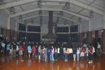 火もほとんど燃え尽き,キャンプファイヤーの終わりを迎えました。「今日の日はさようなら」の1番をみんなで歌い,ハミングをしながら退場しました。