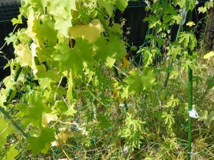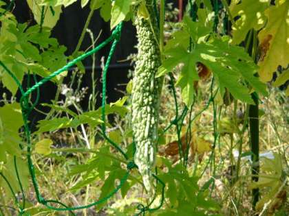 屋上の学級園で4年生が育てている「ツルレイシ」に,やっと実ができました。まだか,まだかと待っていた4年生の子どもたちに,夏休みが明けたらすぐに教えてあげたいと思っています。