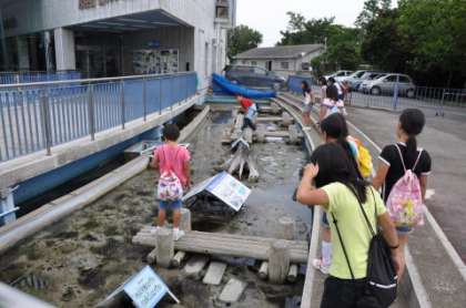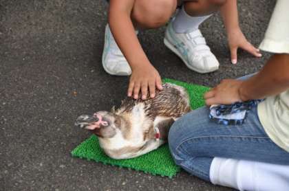 子どもたちは,こわごわ「ペンギンタッチ」をしていましたが,本当にこわかったのはペンギンさんだったのかもしれません。ペンギンタッチの後は,カニやムツゴロウなどが住む干潟の見学をしました。