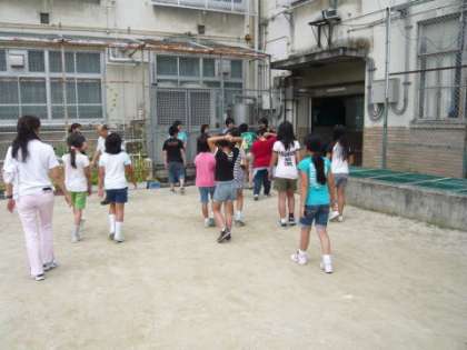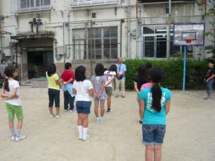 帰校式が始まったころから,出迎えの方々が増えてきました。出迎えてくれた方々に帰校の挨拶をして,最後に校長先生のお話を聞いて帰校式を終えました。そして解散,大きなリュックを背に,みさきの家の思い出を胸に,子どもたちは家路につきました。
