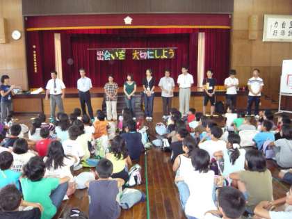 校長先生のお話に続いて,引率する先生方の自己紹介がありました。また,一緒に行く,育成学級のお友達の紹介もありました。