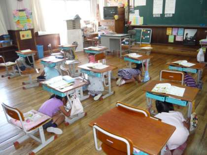 2時間目後半,午前10時10分から,本年度第3回目の「避難訓練」を実施しました。今回の避難訓練は,地震と火災の恐ろしさを知り,身を守るための避難や訓練の重要さを理解したり,正しい避難の仕方を身につけたりすることをめあてとしています。