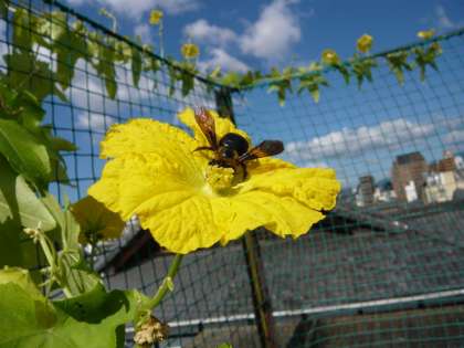 毎日 「ヘチマの花」 に通いつめる 「クマバチ」