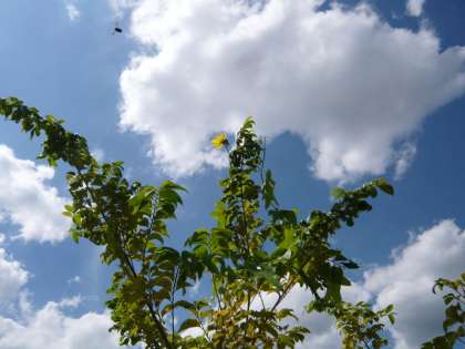 9月も半ばだというのに,まだまだつるを伸ばす「ヘチマ」。そのヘチマの花に,ずんぐりとした「クマバチ」が毎日通いつめています。ヘチマの花から花へ,忙しそうに蜜を集め,蜜集めに堪能すると,西の方へ去っていきます。そして,また次の日も…。