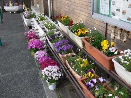今,大和大路通側のプランターには,様々な花が春を満喫するように咲き乱れ,行き交う人の目を楽しませています。今年もグングン伸びた「葉ボタン」,色とりどりの「パンジー」など,とってもきれいですよ!