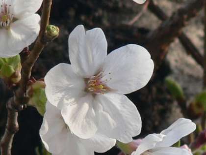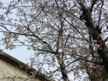 運動場の「しだれ桜」や「マメザクラ」にばかりに気をとられていたら,何と講堂東の「ソメイヨシノ」がご覧のように5分咲きになっていました。大和大路通を行き交う人たちの,目を楽しませていることと思います。なお,運動場の「しだれ桜」は,本日現在まだ開花していません。開花しましたら,お伝えしたいと思っています。