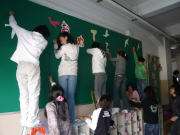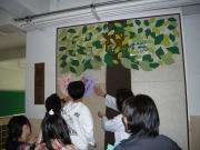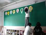 卒業式バージョンだった新道の木の掲示板や大掲示板を,入学式バージョンに張り替えました。