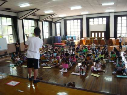 平成23年4月に東山開睛館開睛小学校として統合する5つの小学校(白川・新道・六原・清水・東山の各校)の5年生100人が本校講堂に集まり,10月19日(月)から24日(金)までの4泊5日,花背「山の家」で実施する野外活動の2回目の合同事前学習会を行いました。今年の合い言葉は「出会いを 大切にしよう」,出会いを大切にして仲よく,思い出に残る楽しい活動ができることを期待しています。