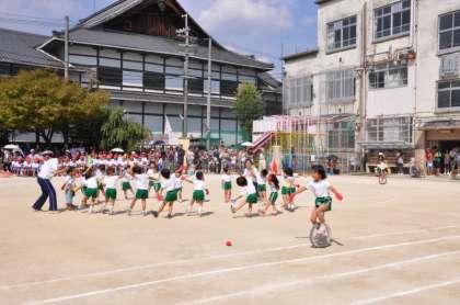 「光保育園」の園児さんは,毎年運動会で可愛い演技を披露してくれています。光保育園の園児さんは踊ることが大好きで,本校の運動場で毎日給食の時間に,楽しみながら一生懸命に練習していました。年長さんの一輪車も上手に乗れて,年長さん以外の園児さんもしっかりと踊ることができていました。光保育園の園児さん,可愛い演技を見せてくれて,ありがとうございました。