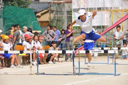 プログラム番号6番は,5・6年生の個人競技「ハードル走」でした。フォームを考え,スピードをつけてハードルをまたぎ越す姿は,さすが高学年と感じました。迫力ある,素晴らしいハードル走でした。