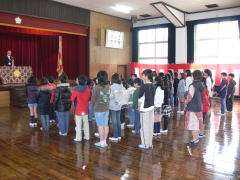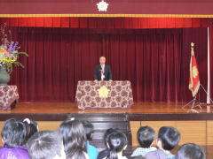 着任式終了後すぐに,平成21年度「前期始業式」を実施しました。2年生から6年生までの56人の子どもたちが,講堂に新しい学年の順に並んで整列し,校歌を斉唱して始業式が始まりました。始業式では「勉強の好きな子」,「思いやりのある優しい子」,「明るく元気な子」になってほしいという,校長先生からの3つのお願いがあり,1学年ずつ進級した子どもたちは,真剣に校長先生のお話に耳を傾けていました。また,校長先生のお話のあと担任発表があり,子どもたちは担任が発表されるたびに…。