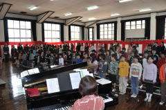 着任式と始業式が終わり講堂の準備が整った午前10時から,平成21年度の「入学式」を開式しました。本年度の入学児童は例年より多く,男子9名,女子8名の17名でした。教頭先生の開式宣言で入学式は始まり,国歌と校歌の斉唱,学校長式辞,来賓祝辞と続きました。次に1年生担任と教職員の紹介,新1年生の担任からの紹介があり,最後に2年生の子どもたちの「お迎えの言葉」で入学式を締めくくりました。1年生の子どもたちは,校長先生や来賓のお話をしっかりと聞いたり,担任から名前を呼ばれたらしっかりと返事をしたりすることができていました。この入学式の詳しい様子は,後日お伝えします。