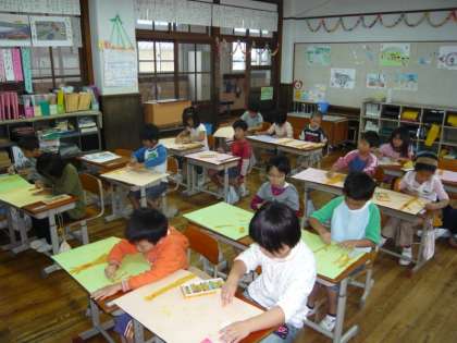 1年生の子どもたちが,図工の時間に「お話の絵」に取り組んでいます。