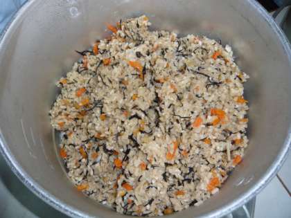 台風18号が接近し,「暴風警報」が午前7時42分まで出ていた,今日10月8日(木)の給食の献立は,「炊きこみ五目ごはん」と「牛乳」,「みそ汁」の「台風用献立」でした。
