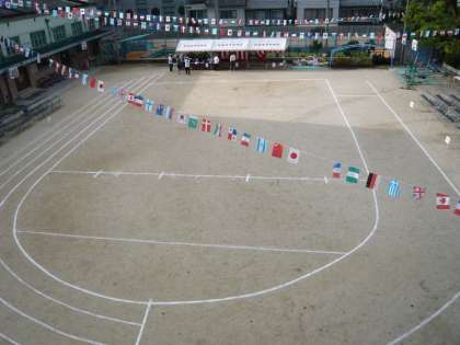 今日10月11日(日)は,本校運動場で新道体育振興会主催の『 新道学区民「体育の集い」』が開催されます。ご覧のように準備が整い,午前9時からの開会式を待つだけになっています。