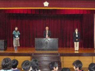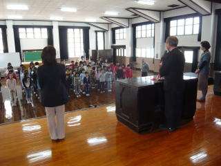 学校だより4月1号でもお伝えしていますが,本年度「初任者研修指導員」と「総合育成支援員」の先生方も本校の教職員としてお迎えすることになりました。今日お二人がそろわれたので,中間休みに講堂でお二人を子どもたちに紹介する「着任式2」を実施しました。入学したばかりの1年生も参加し,よい姿勢で校長先生やお二人のお話を聞いていました。
