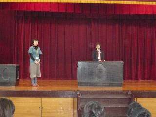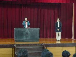 新しい教職員としてお迎えした,お二人のご挨拶の様子です。新しくお迎えしたお二人は,