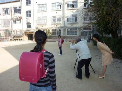 「集合写真」と「グループ写真」を撮影したあと,次に一人ずつの顔のアップの写真を撮りました。6年生の子どもたちはやや緊張気味でしたが,いい写真が撮れたことと思います。続いて6年間使い続けたランドセルを背負った,一人ずつの写真を撮影して今日の撮影は終了しました。