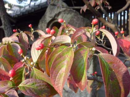 今日から「11月」,学校の玄関,大和大路通側に置かれたプランターの花々は,秋の花が美しく咲きそろい,大和大路通を行き交う人の目を楽しませています。また,運動場西の「モミジ」も色づき始め,秋の深まりを感じさせてくれています。そして,過日紹介した,学校のお隣の「ゑびす神社」の「ハナミズキ」が,ご覧のように赤く色づきました。
