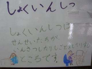 画像は,「理科室」と「職員室に付けられた紹介の札」です。