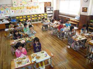 1年生が初めて給食を食べました。その様子をお伝えします。
