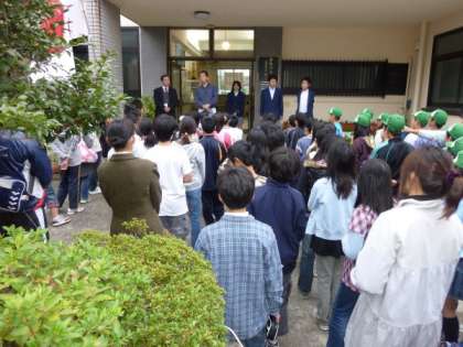 授業体験と部活動の見学が終わると,洛東中学校の玄関に集合しました。教頭先生と担当してくださった先生,お世話してくださった3年生の先輩に,お礼の挨拶をしてすべてが終了しました。