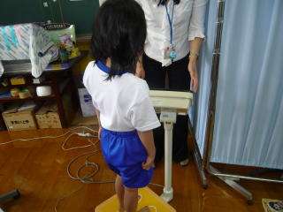 6日(月)の「入学式」から1週間,今日1時間目に1年生が初めての「身体計測」を行いました。教室で体育の服装に着替えて保健室にやってきた1年生の子どもたちは,保健室の先生から身体計測の仕方を教わり,身長,座高,体重の順に身体計測を行いました。また,身体計測が終わると視力検査と聴力検査も行いました。1年生の子どもたちは,初めての計測や検査とは思えないほど,静かに上手に行うことができていました。