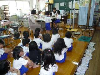 1年生の初めての「身体計測」の様子です。