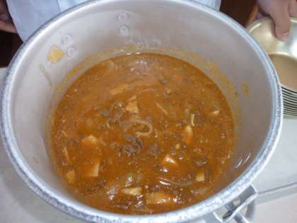 料理酒,トマトピューレ,サラダ油,バター,ヨーグルト,生クリーム,ローリエなどが使われて「ビーフストロガノフ」は作られていました。ごはんに「ビーフストロガノフ」をかけて,スプーンですくっておいしくいただきました。「ビーフストロガノフ」に使われていた,じくが白くて太い「ヒラタケ」というキノコの仲間の「エリンギ」,噛んだときのコリコリとした歯触りが,とてもよかったですよ。