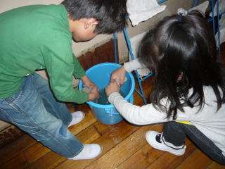 画像左は「机を拭いて」,右は「ぞうきん絞り」です。