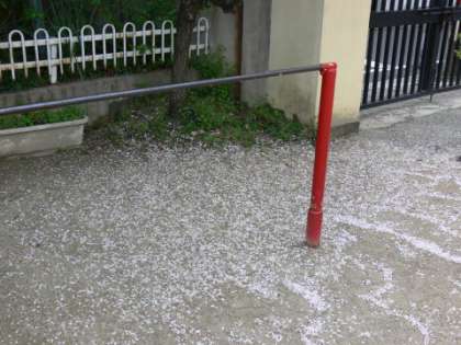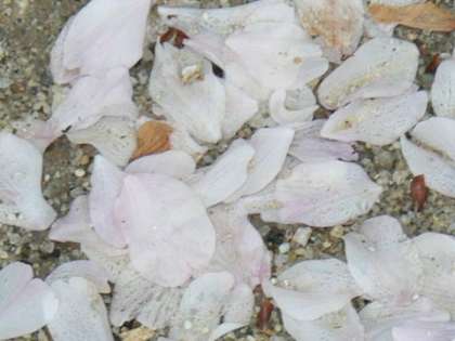 久しぶりに降った昨日の雨で,美しく咲いていた校庭の「しだれ桜」の花びらが舞い散り,ご覧のように「花びらの絨毯」ができています。学校の「八重桜」と「ソメイヨシノ」,「マメザクラ」は完全に落花して,葉桜となっています。校庭の「しだれ桜」も,そろそろ見ごろを終えようとしています。