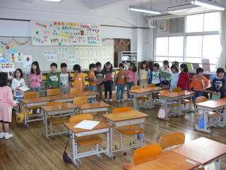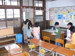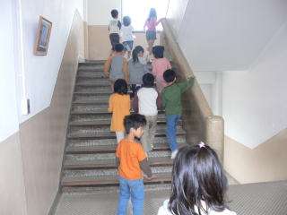 1年生の子どもたちが,2年生のお兄さんやお姉さんに,「学校探検」に連れて行ってもらいました。
