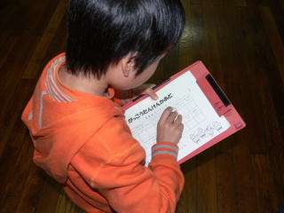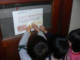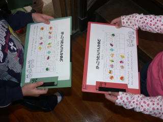 部屋の説明が終わると,説明カードにつけてあるシールを1枚ずつとって,「がっこうたんけんかあど」に貼っていきました。