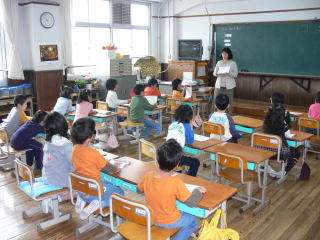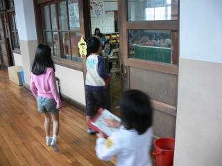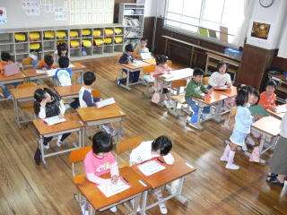探検を終わって教室に帰ると,担任の先生から何階にどんな教室があったかを聞かれ,正しく答えることができていました。そして,学校探検の感想も話しました。