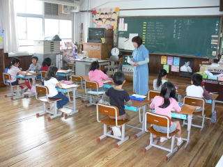 1年生の学校探検に付き添ってあげた2年生は,早く帰ってきた子から読書をして待っていました。みんなそろうと,担任の先生から紙を配ってもらって,学校探検に連れて行ってあげた感想を書きました。