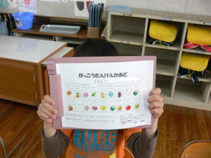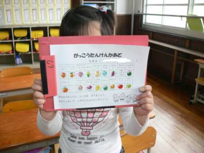 学校探検が終わって,シールがいっぱい貼られた「がっこうたんけんかど」を,誇らしげに掲げています。1年生の子どもたちは,学校探検を終えてとっても満足した様子でした。2年生のみなさん,ご苦労様でした。
