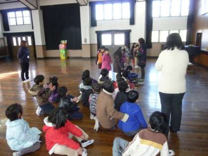 「あそびランド」 を講堂で行いました (1年生)