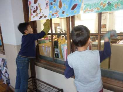 明日からの冬休みを前に,「大掃除」を行いました。「大掃除」は通常の清掃時間を10分間延長して行いました。各学年の子どもたちは,平成21年1年間の汚れを,しっかりと落としました。いつもは手の届かないところや,教室,廊下,階段などの隅々を,ていねいに拭き掃除や掃き掃除して,みんなでがんばって学校を美しくしました。
