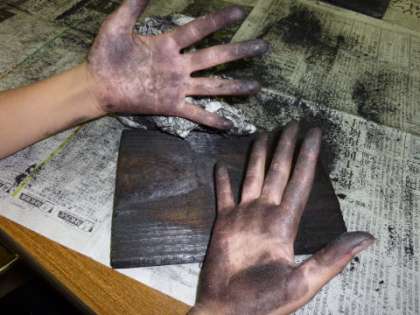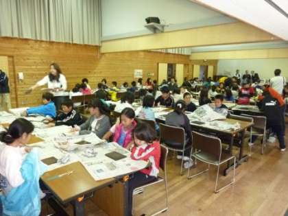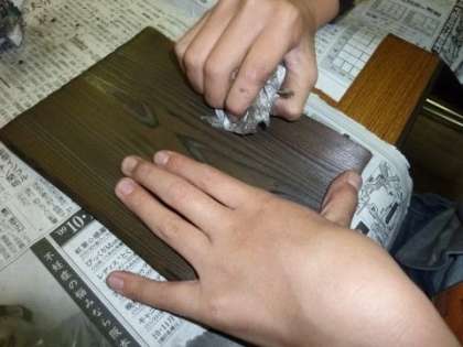 福嶌先生のお話が終わり,最終日5日目の2つ目の活動は,「焼き杉板づくり」でした。1日目の野外炊事の時に焼いた杉板を1枚ずつもらい,ピカピカになるまで磨きました。杉板はピカピカになりましたが,手のひらが…。