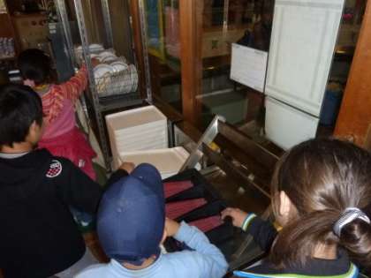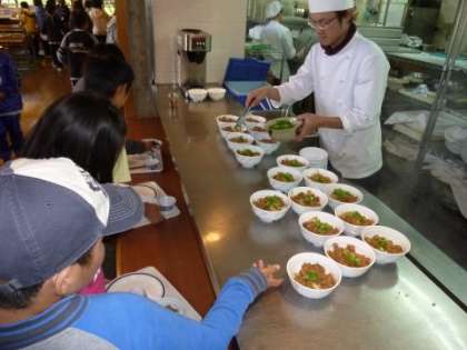 午前中に行った2つの活動,「福嶌先生のお話」と「焼き杉板づくり」が終わり,いよいよ山の家での最後の食事が,12時から始まりました。最後の食事は,「焼肉丼」か「うどんとかやくご飯」のどちらかを選びます。