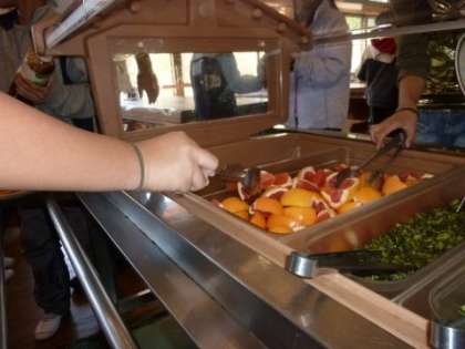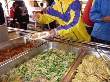 「焼肉丼」か「うどん」のどちらかを選んで席に着くと,仕切り皿を持ってバイキングカウンターに行きました。何回もバイキングカウンターを経験しているので手慣れたもの,自分が食べたいおかずをしっかりとキープしていました。