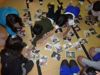 この「ルンルンカルタ大会」は,各学級で一人一人のいいところを見つけて紙に書いたものを読み札にし,児童会の役員が子どもたち全員の顔写真を撮って印刷したものを絵札にして行います。読み札にはその子の優しいところや,何でもがんばってするところ,長所や特技など,一人一人の子どもたちのいいところを見つけたことがしっかりと書かれています。今年もA〜Hの8つの「なかよしグループ」ごとに実施します。