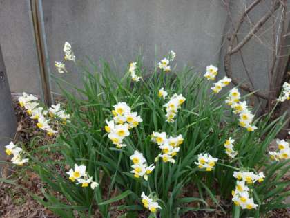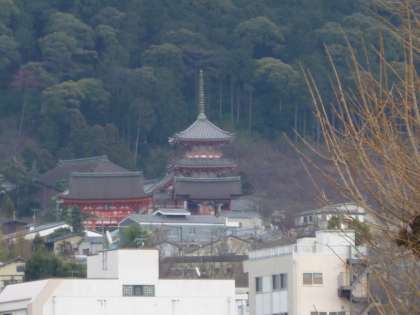 画像は,上から「運動場隅に群生する満開になった水仙」,「雪が少し残っている比叡山山頂」,「春や秋に比べ寒々と見える清水寺」です。比叡山と清水寺は,本校の本館3階から撮影したものです。