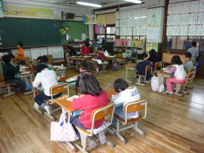 洛東中学校の2年生2人が,2月1日(金)からチャレンジ体験で本校に来ていますが,そのチャレンジ体験も今日が最終日です。1週間お世話になった1年生が,お礼の「ありがとう」のお手紙を,5時間目に書きました。