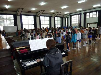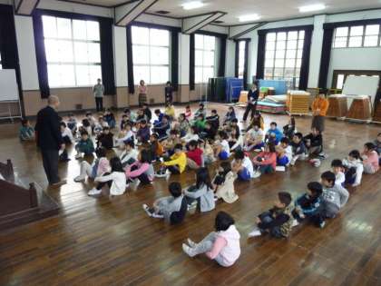 そして,今月の歌「友達になった日」を美しい声で全員で歌って,「つくって遊ぼう集会」に移りました。