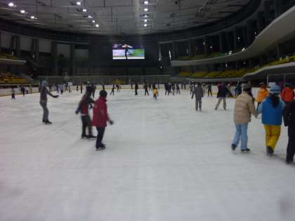 午前10時過ぎからの休憩時間をはさんで正午前まで,約2時間子どもたちはスケートを楽しみましたが,最初は手すりにつかまってこわごわだった子も,スケート教室が終わるころになると,スイスイとまではいかないものの,何となくスケートをしている姿になっていました。