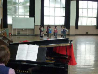 明日5時間目に講堂で実施する「6年生を送る会」に向けて,2年生の子どもたちが1時間目に講堂で,鍵盤ハーモニカの演奏と歌の練習をしていました。