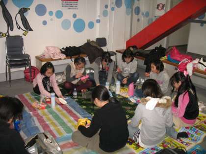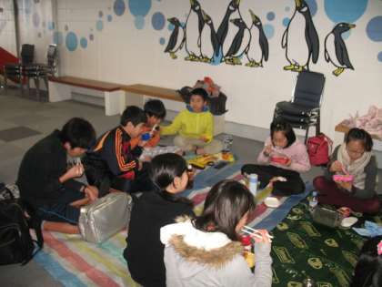 外で海を眺めながらのお弁当にはやや寒さが気になり,海遊館の館内でおいしく昼食のお弁当を食べました。