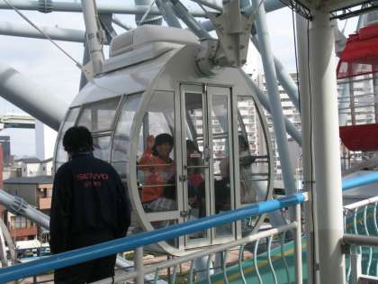 昼食のあとは,大観覧車に乗りました。この観覧車は,実に大きな観覧車で,1周15分もかかりました。遠くに瀬戸内海や大阪市街も一望でき,素晴らしい景色を眺めることができました。