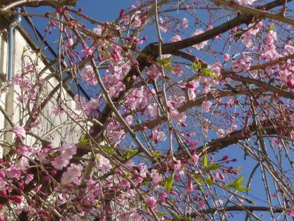 画像は職員室西の「シダレザクラ」ですが,昨日の冷え込みから一転して,今日は暖かな日差しを浴びて開花が進んでいます。見ごろはまだですが,今日のような暖かさが続けば,来週初めには5分咲き程度になり,見ごろを迎えるのではないかと思います。また,運動場西側のもう1本の「シダレザクラ」は,まだ開花が始まったばかりで,見ごろまでにはほど遠さを感じます。